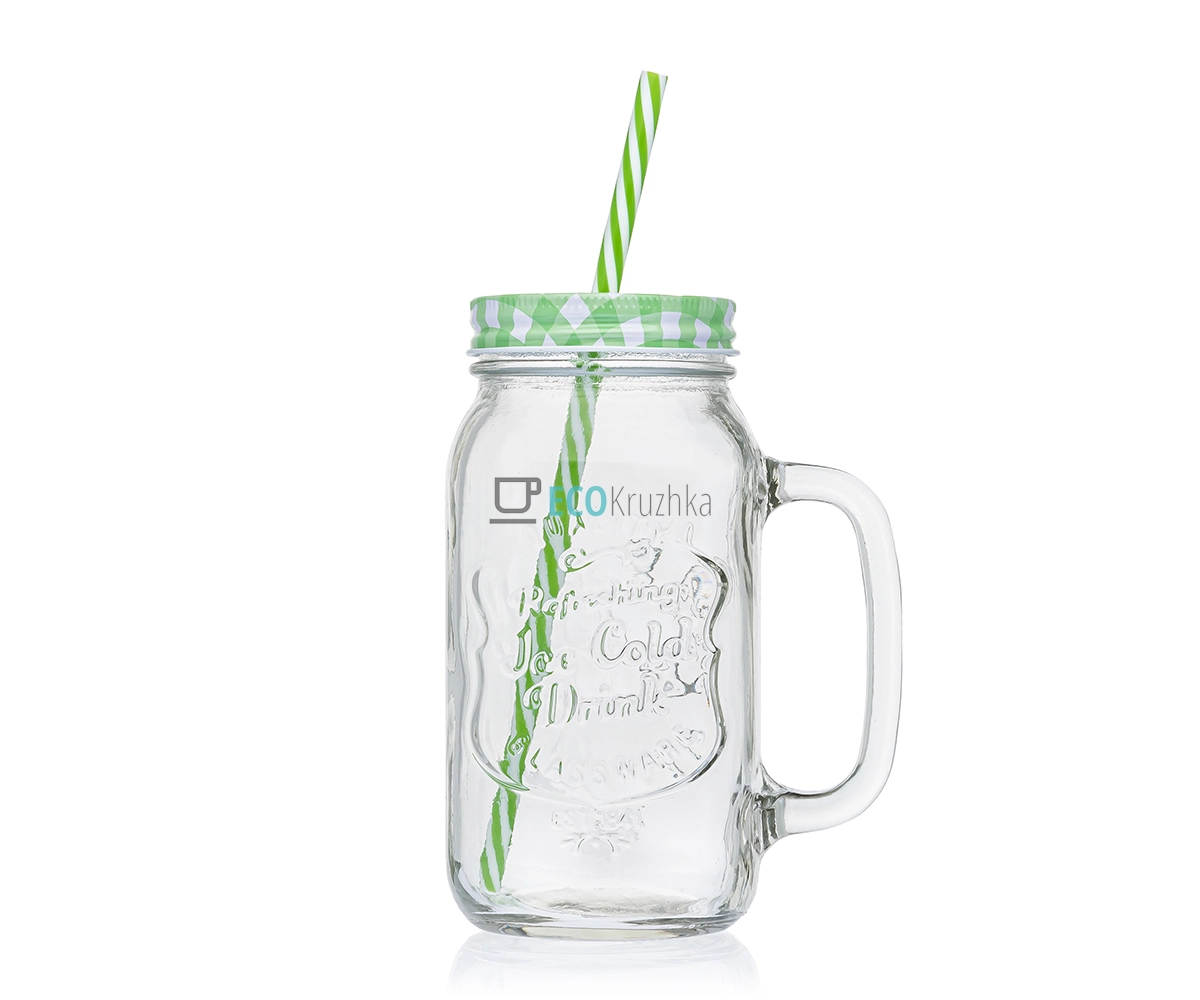 Чашка-банка 600 мл з кришкою, що закручується, і трубочкою Салатова R29812