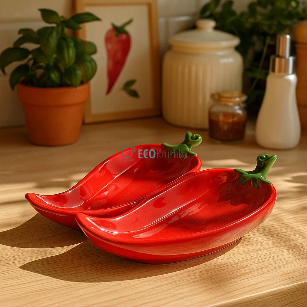 Червоний колір менажниці надає їй яскравості та життєвого натхнення, який підніме настрій будь-якому гостю або члену родини. Дизайн у вигляді перцю додає не тільки веселощів, а й елементу оригінальності, який чудово підійде для тематики вечірок, зустрічей або як подарунок на свято. 🌶️💝🎉