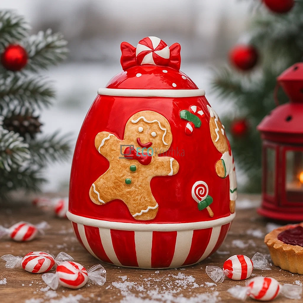 Уявіть собі затишний зимовий вечір: аромат свіжоспечених пряників, гарячий чай, тепла атмосфера та… яскрава керамічна банка, що вже сама по собі створює настрій свята 🎄🍪. Саме такою є ця чарівна ємність для зберігання — не просто посудина, а справжній елемент домашнього затишку, який дарує тепло й радість щодня.