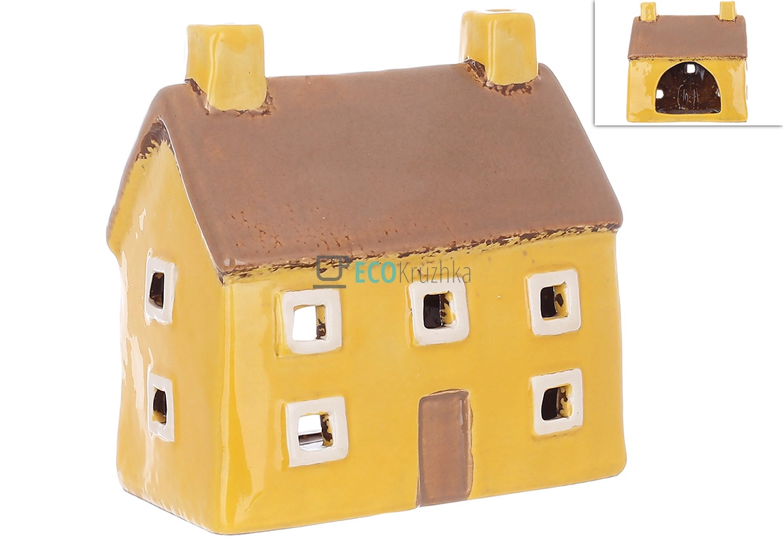 Керамічний свічник у формі Будинку, 12 × 7 × 11.5 см (Модель 109-012) – це чудовий вибір для створення затишної атмосфери в будь-якому інтер'єрі. Виготовлений з кераміки, цей свічник поєднує в собі елегантність і практичність. Жовтий колір цього свічника додасть яскравих фарб у вашу оселю, створюючи теплу і комфортну атмосферу, а форма будиночка привносить в інтер'єр нотку казковості та чарівності.