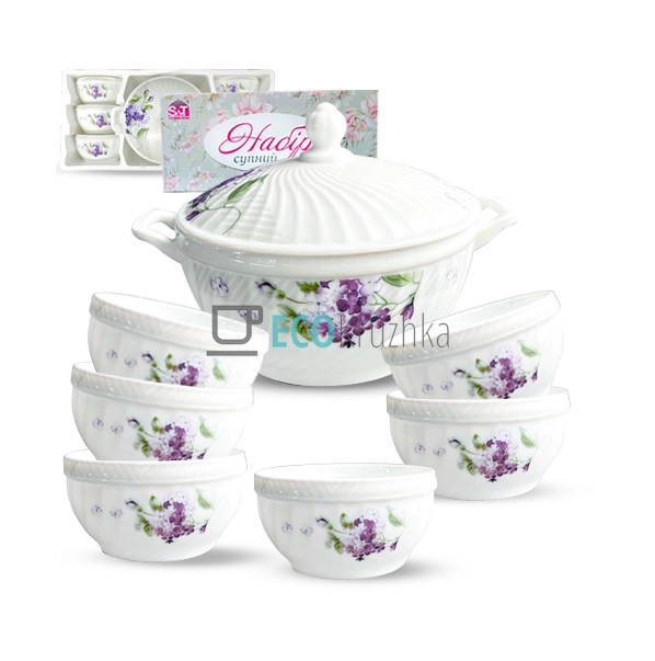 Набір суповий 7 предметів Гортензія (2.5 л, 740 мл) Склокераміка Білий (202052)